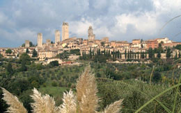 Auf einem Hügel inmitten der Toskana thront das Dorf San Gimignano. Schmale Straßen schlängeln sich zwischen Weinreben und Olivenhainen bis zur mittelalterlichen Ortschaft hinauf. Beschaulich wirkt die 7000-Seelen-Ansiedlung mit den hoch aufragenden Steintürmen jedoch nur auf den ersten Blick: Früher verliehen Etrusker, Römer und mächtige mittelalterliche Familien dem Ort sein eindrucksvolles Angesicht. Heute ist San …