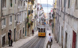 Nicht jeder kann sich mit Höhen anfreunden. Wer lieber am Boden bleiben will, kauft sich am Besten ein Ticket für die Straßenbahn, die "Eléctrico". Mit der stadtbekannten Linie 28 geht es dann ab zum Sightseeing. Denn die Straßenbahn fährt an allen wichtigen Sehenswürdigkeiten Lissabons vorbei. Vom Westen der Stadt geht es im lang gezogenen Schwung durch Bairro Alto, Baixa und Altstadt.