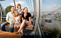 Einer der Höhepunkte ist die spektakuläre Seilbahn über den Rhein, die die Besucher von den innerstädtischen Ausstellungsbereichen "Kurfürstliches Schloss" und "Blumenhof am Deutschen Eck" zur "Festung Ehrenbreitstein" bringt und dabei einen atemberaubenden Blick ins Obere Mittelrheintal bietet.