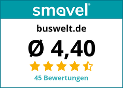 Der Reiseanbieter buswelt.de wurde durchschnittlich mit 4,40 von 5 möglichen Sternen durch insgesamt 45 Personen bewertet. Um Ihnen einen bestmöglichen Überblick über die Qualität und die Beurteilung von buswelt.de zu bieten berücksichtigt smavel dabei auch die Bewertungen auf anderen Meinungsportalen.