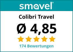 Der Reiseanbieter Colibri UmweltReisen wurde durchschnittlich mit 4,85 von 5 möglichen Sternen durch insgesamt 174 Personen bewertet. Um Ihnen einen bestmöglichen Überblick über die Qualität und die Beurteilung von Colibri UmweltReisen zu bieten berücksichtigt smavel dabei auch die Bewertungen auf anderen Meinungsportalen.