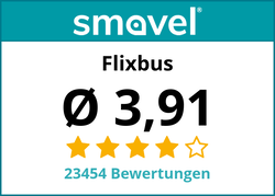Der Reiseanbieter FlixBus wurde durchschnittlich mit 3,91 von 5 möglichen Sternen durch insgesamt 23454 Personen bewertet. Um Ihnen einen bestmöglichen Überblick über die Qualität und die Beurteilung von FlixBus zu bieten berücksichtigt smavel dabei auch die Bewertungen auf anderen Meinungsportalen.